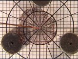We used a lathe to etch a circular groove about 0.5 mm deep, centered on one of the Plexiglass plates. This groove is where the copper ring will sit and thus has the same inner and outer diameters. Since the groove is only 0.5 mm deep and the ring is 1 mm thick, when the ring is in the groove, it will protrude 0.5mm leaving a cavity where aqueous CuSO4 can be poured. This same plate had a small hole drilled in the center, just big enough for the un-insulated copper wire to be inserted. In hind-sight, it would have been better for the groove to be in one plate and the hole in the other in order to facilitate the setup of the experiment (see below).